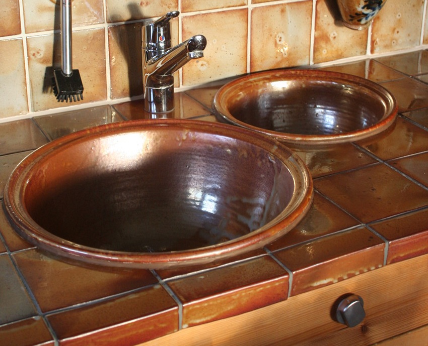 Faience lebih murah daripada porselin. Ia mempunyai struktur berpori. Suara yang dibuat oleh sinki tembikar ketika mengetuknya lebih membosankan. Salah satu ciri penting dari bahan ini ialah retakan muncul di permukaan produk faience semasa operasi. Mereka menjadi lebih gelap dari masa ke masa. Akibatnya, corak asli yang menyerupai jaring laba-laba terbentuk di permukaan.