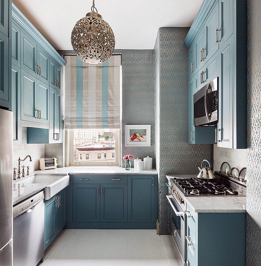 Dapur kecil: reka bentuk kertas dinding untuk ruang kecil