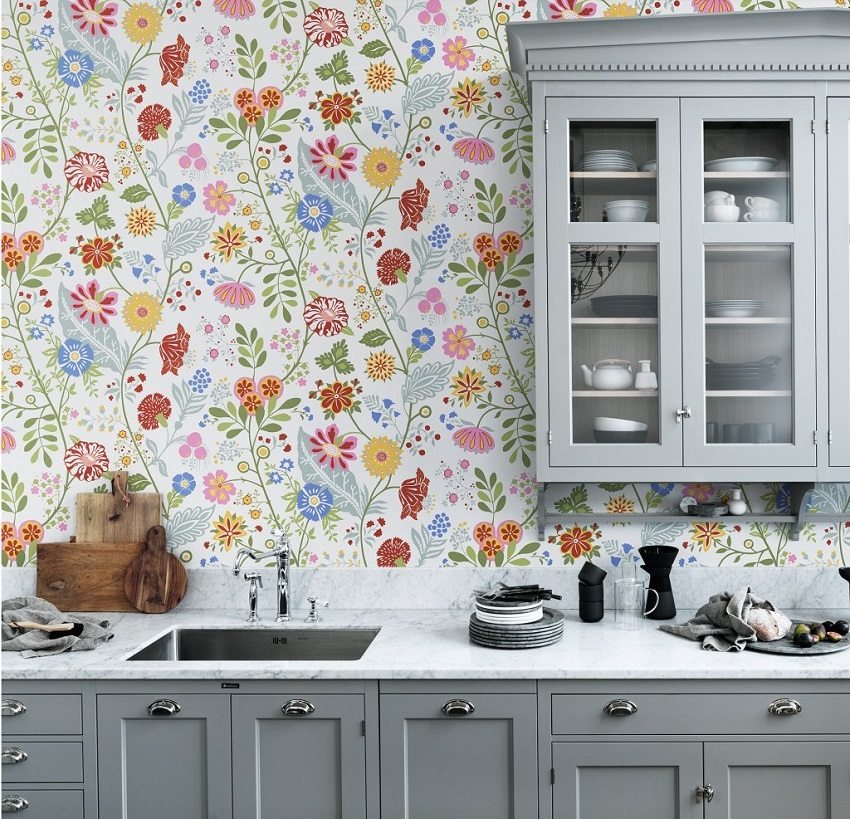Kertas dinding di dapur untuk pangsapuri: foto - contoh, nasihat reka bentuk