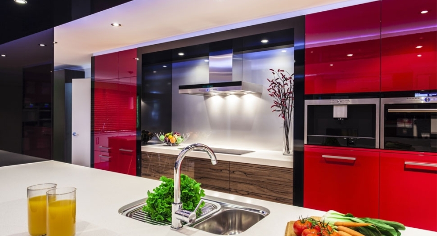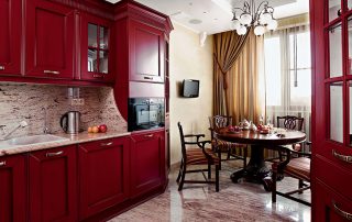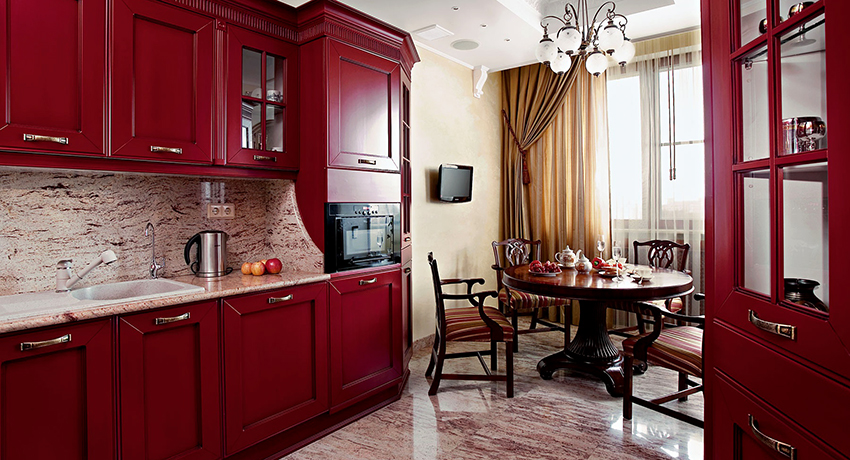 Dapur merah: kelebihan dan kekurangan penggunaan warna. Ciri-ciri reka bentuk bilik besar dan kecil. Warna asas, digabungkan dengan warna merah di bahagian dalam dapur.