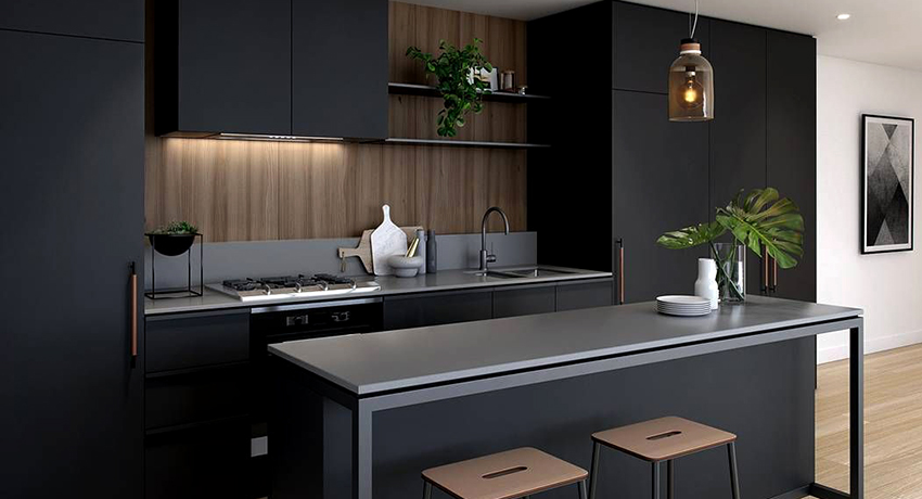 Dapur hitam: ciri, kelebihan dan kekurangan warna, kombinasi yang kompeten dengan nada lain. Peraturan reka bentuk dalaman di dapur yang berbeza. Gambar contoh reka bentuk.