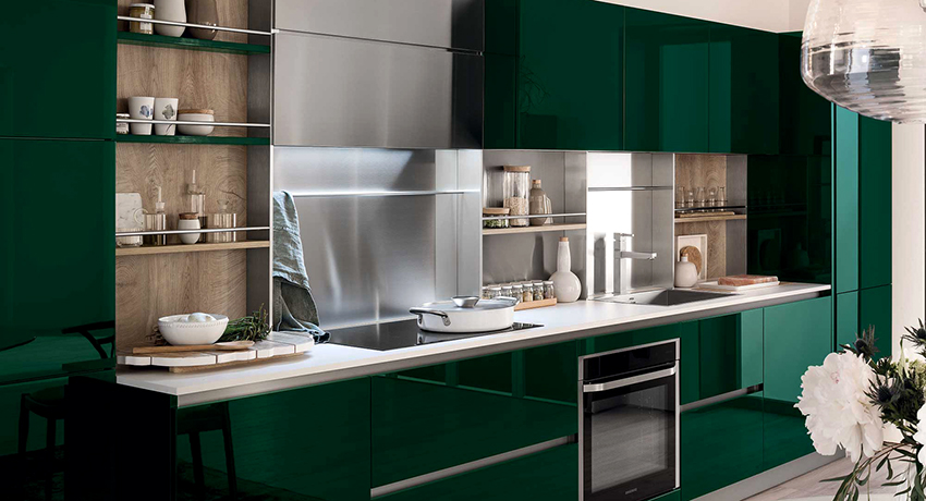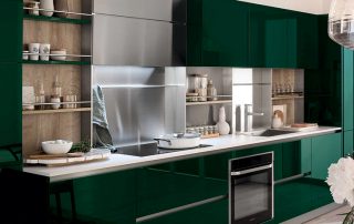 Dapur hijau: pilihan teduh asas, kombinasi dengan warna lain. Cara membuat fasad perabot dapur, susun apron. Ciri-ciri pemilihan tekstil dan hiasan.