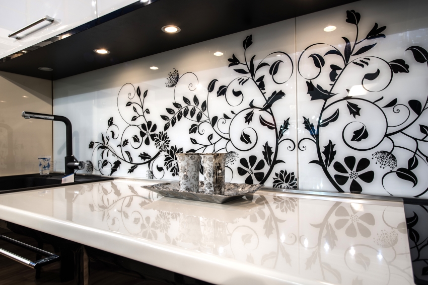 Kelebihan utama panel kaca daripada yang lain adalah permukaan yang sangat halus, di liang-liang dan calar mikroskopik yang kotoran dan debu tidak dapat terkumpul. Satu-satunya perkara yang perlu diberi perhatian semasa pemasangan kulit adalah jarak antara sumber api terbuka dan panel mestilah sekurang-kurangnya 7 cm. Ini disebabkan oleh risiko merosakkan corak pada panel, dan dalam beberapa kes bahan itu sendiri.