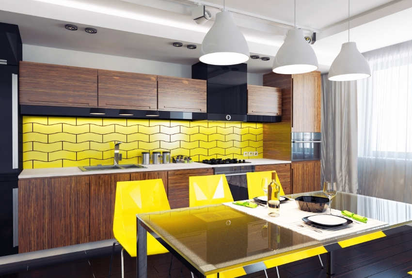 - ambil kira ciri pencahayaan: untuk dapur gelap, lebih baik menggunakan panel cahaya, tetapi untuk ruang yang terang, pilihan warna juga sesuai;