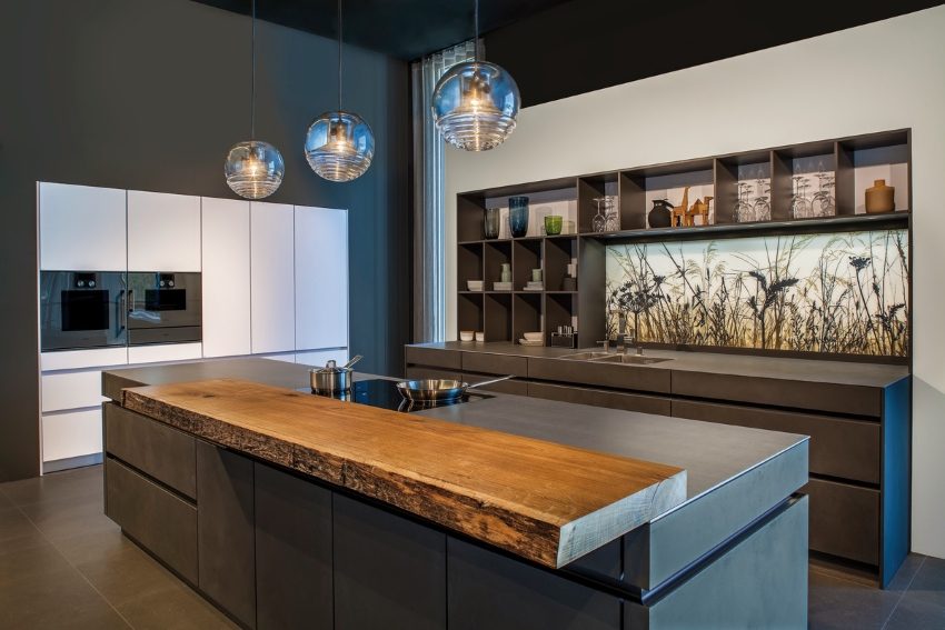 Reka bentuk panel dapur: PVC, kaca dan apron kayu