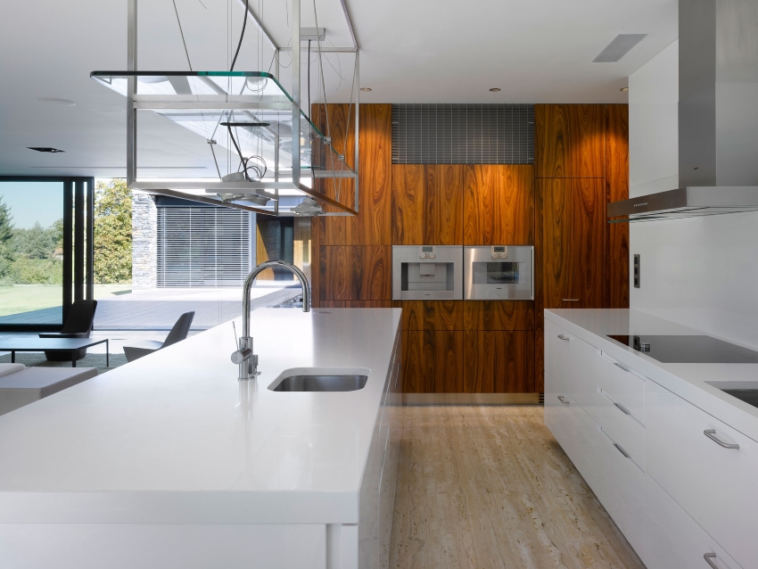Mungkin, panel yang terbuat dari batu buatan mempunyai jangka hayat operasi terpanjang. Memiliki kekuatan super, bahan ini tahan terhadap tekanan mekanikal. Di samping itu, reka bentuk ini kelihatan mewah, terutamanya jika bahagian dalamannya menyediakan kehadiran unsur-unsur lain yang terbuat dari bahan yang sama, misalnya, ia boleh menjadi meja dapur.