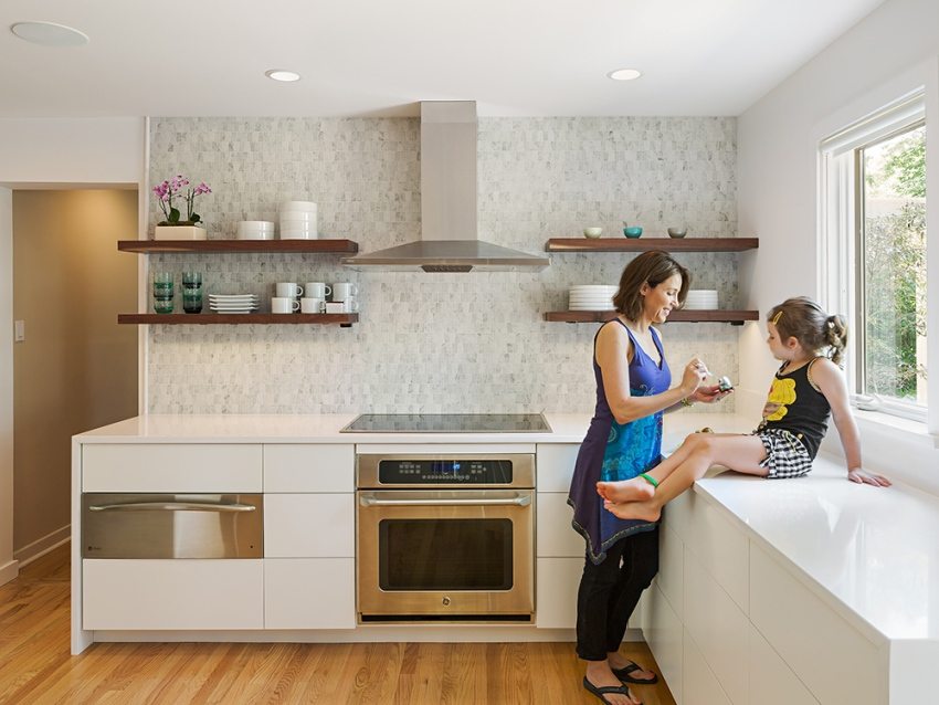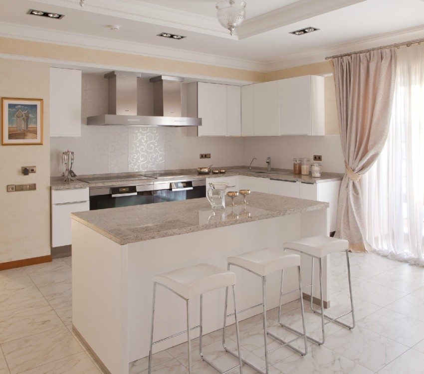 - jika anda tidak dapat memadankan warna jubin dengan dapur anda, pilihlah warna putih, ini adalah pilihan win-win. Anda boleh mengambil warna putih: susu, berkrim, bersalji. Di sini anda masih perlu mempertimbangkan jenis pencahayaan: dalam cahaya sejuk, seramik kelihatan berbeza daripada cahaya terang;