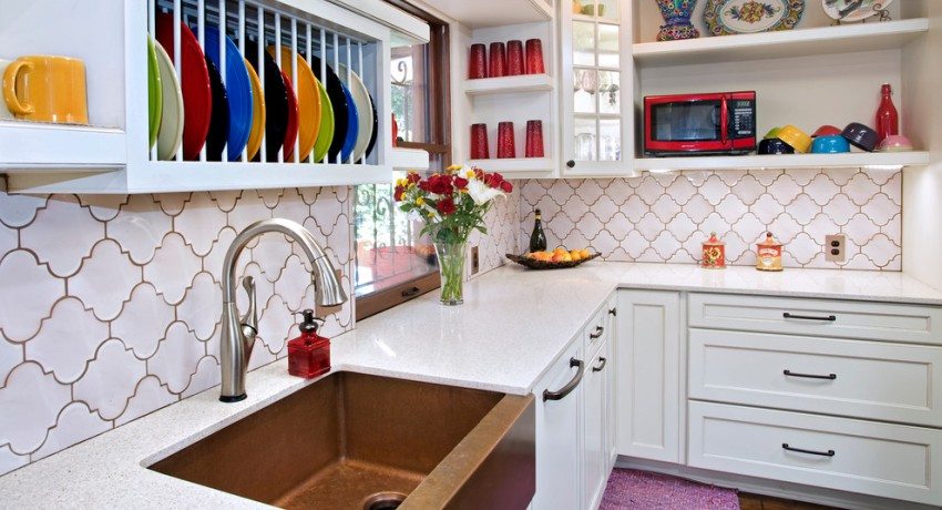 Seramik secara tradisional adalah bahan yang paling dituntut untuk hiasan dapur. Kelebihan bahan: