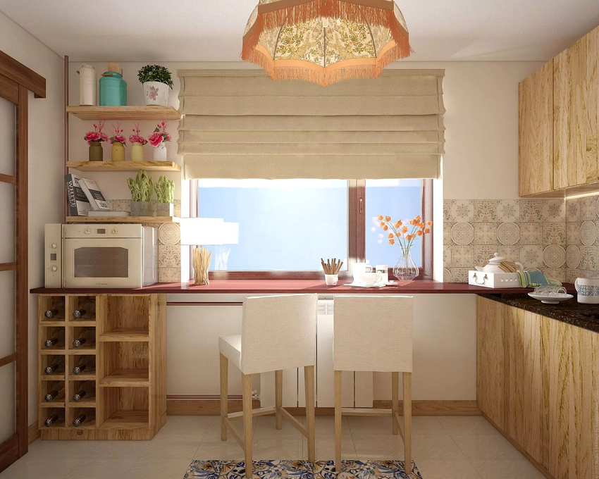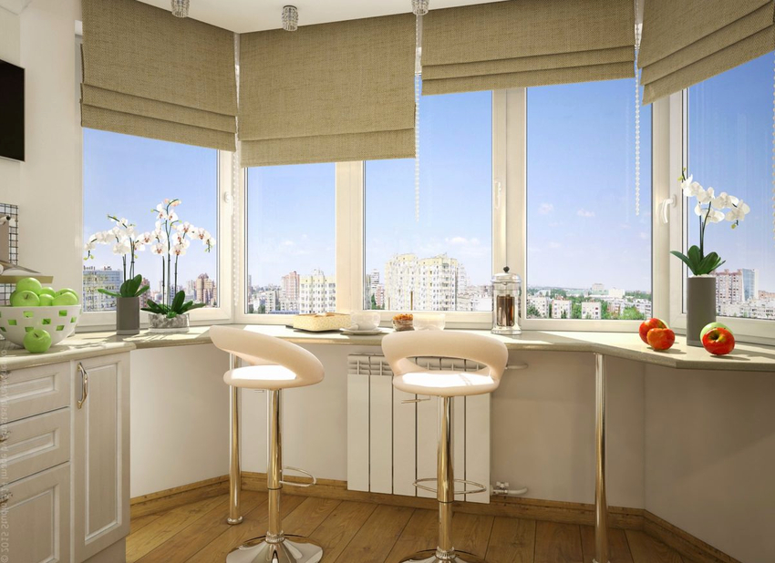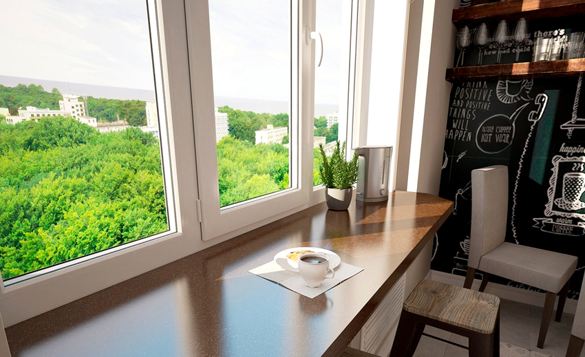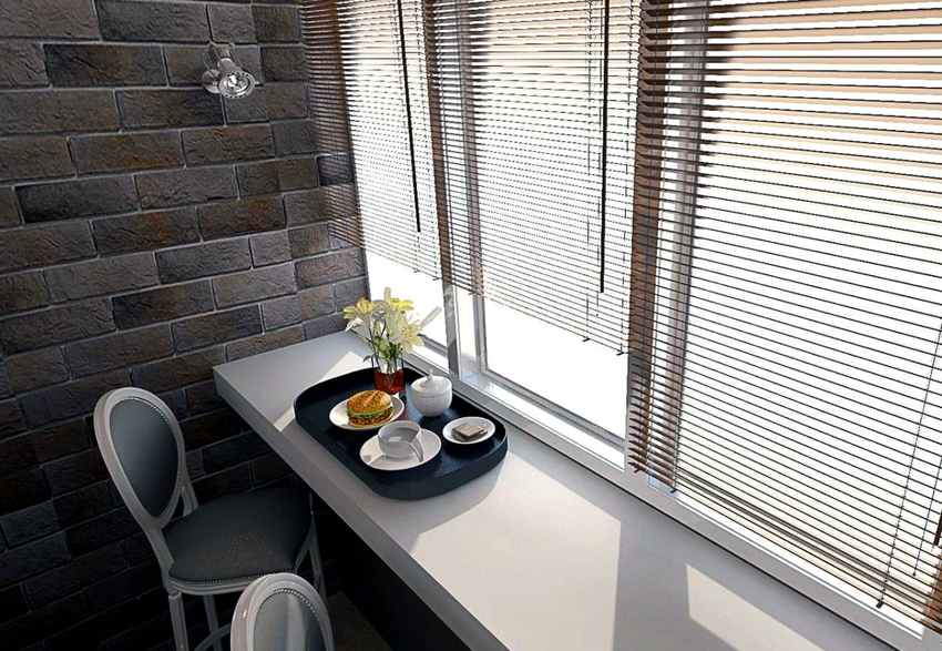 Cara membuat ambang jendela di balkoni atau dapur sebagai kawasan fungsional bergantung pada pemikiran pemikiran artis, pada keperluan pemilik, serta pada geometri, luas dan sejumlah ciri lain dari ruangan tersebut.