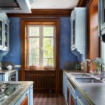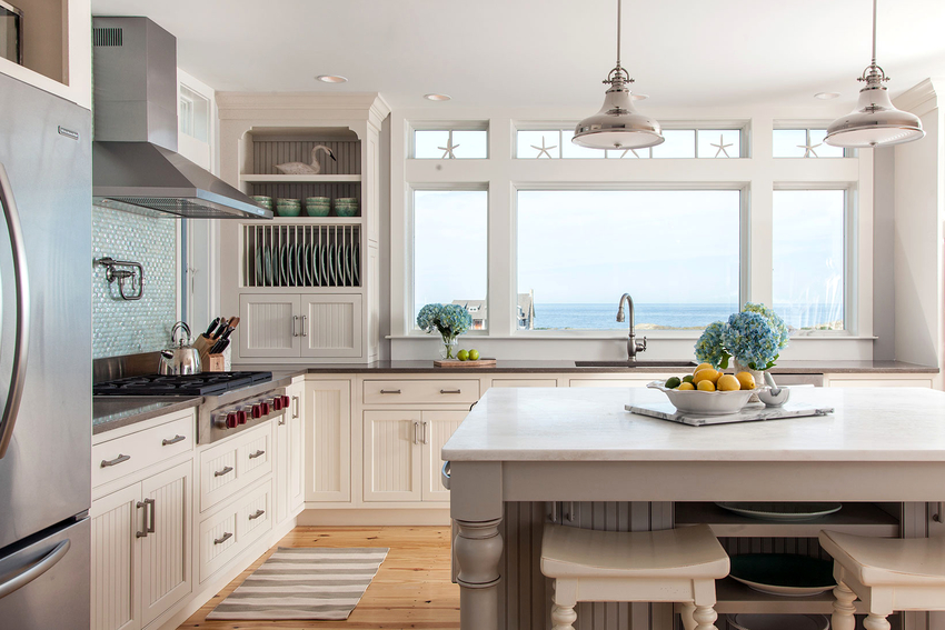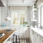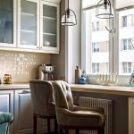 Tingkap tingkap, yang merupakan penghitung bar, menyiratkan kehadiran kerusi dengan alas kaki sesuai dengan ketinggian