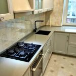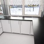 Dalam proses membuat dapur dengan ambang jendela meja, perlu mengambil kira kehadiran radiator di bawahnya. Untuk mengelakkan permukaan mengganggu aliran udara yang dipanaskan, perlu memotong lubang di dalamnya, yang, untuk estetika, disarankan untuk ditutup dengan jeriji. Untuk meja kerja itu sendiri, akan lebih senang menggabungkannya dengan kawasan kerja yang tersisa, memberikannya bentuk huruf "G".