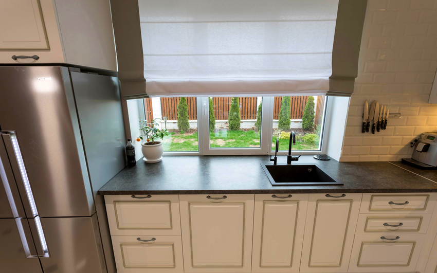 - Adalah wajar sekurang-kurangnya satu selendang tingkap dibuka pada sudut 90 darjah. Kemudian anda boleh mencuci keseluruhan tetingkap dengan mudah. Untuk melakukan ini, letakkan sinki lebih dekat ke tepi, bukan di tengah.