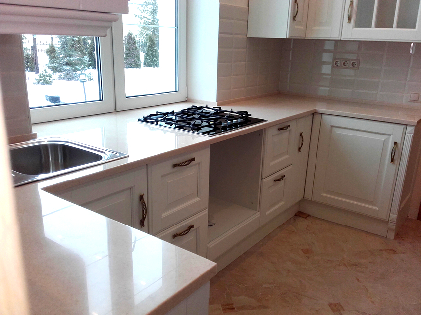 Semasa memilih bahan untuk meja dan bukannya ambang jendela di dapur, seseorang harus mengambil kira bahawa ia akan berada dalam keadaan kelembapan tinggi, serta perubahan suhu yang berterusan. Oleh itu, anda harus mencari pilihan yang, walaupun banyak, akan bertahan lama. Adalah lebih baik untuk mengutamakan granit semula jadi atau bahan komposit berkualiti tinggi.