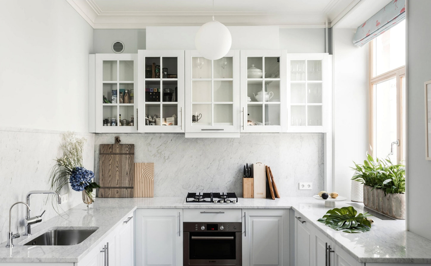 Struktur kaca akan menambah gaya dan keaslian ke bahagian dalam dapur, dan kerana ketebalan kaca, mustahil untuk pecah.