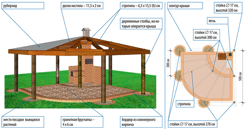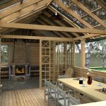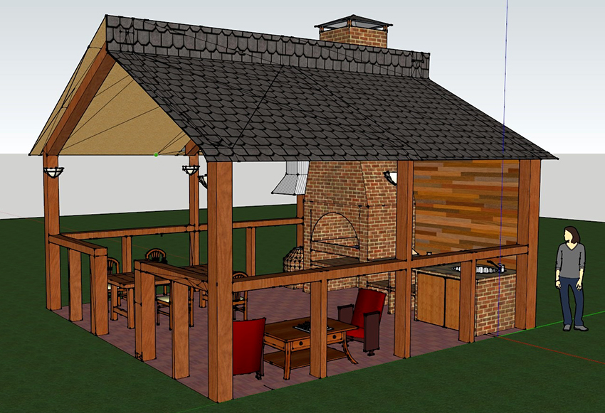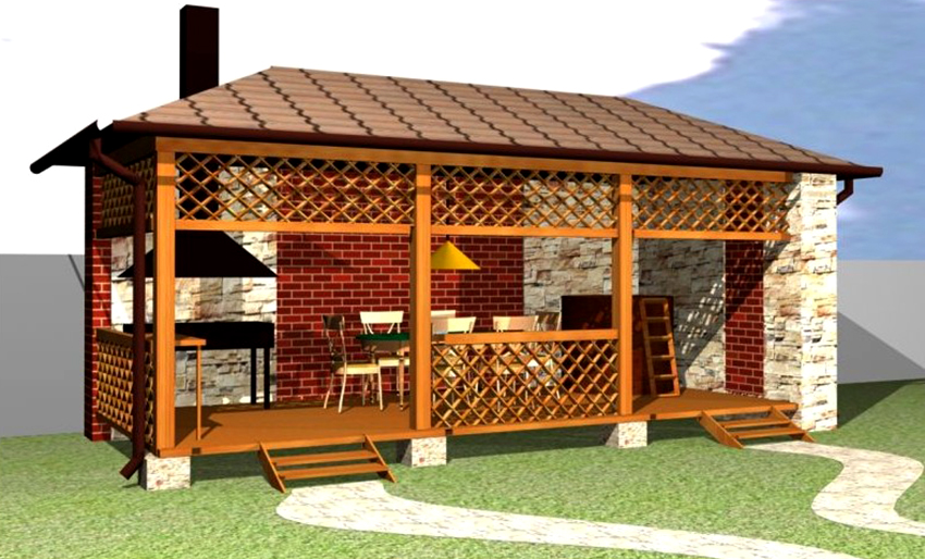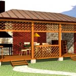- Buka gazebo dapur. Ia dianggap sebagai pilihan yang sangat baik jika anda ingin melengkapkan dapur dengan barbeku. Dalam kes ini, anda perlu meletakkan asas, dinding padat dan bumbung yang kukuh.