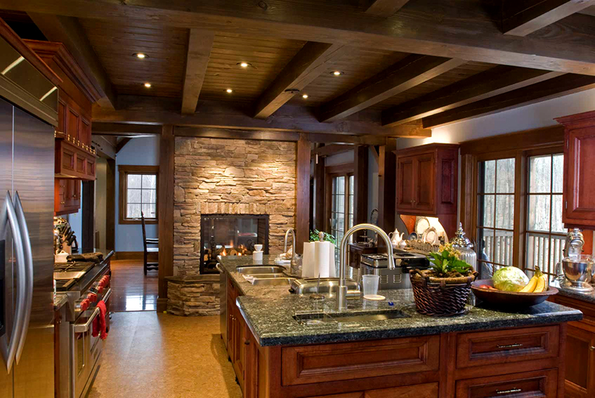 Nasihat berguna! Sekiranya anda melihat foto-foto bahagian dalam ruang tamu dapur di rumah persendirian, maka anda boleh memperhatikan bahawa perapian yang indah yang dipasang di ruang tamu adalah sifat yang sangat diperlukan. Ini akan membantu mewujudkan suasana yang selesa di dalam bilik.
