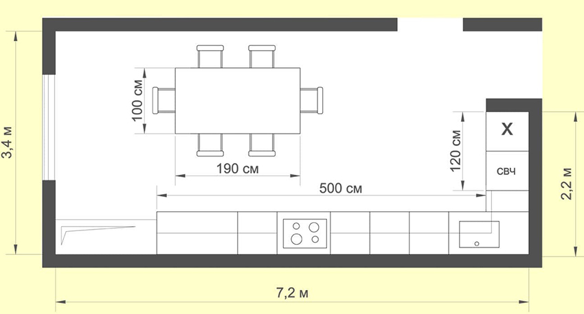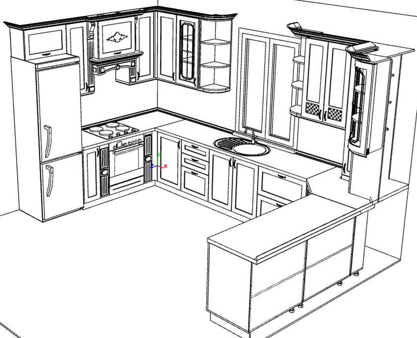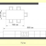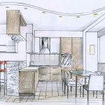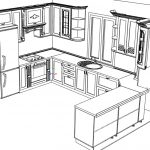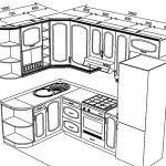 Setelah melukis semua item pada gambar, akan menjadi jelas yang mana dimensi meja dapur sesuai untuk pemasangan, dan kemudahan konfigurasi segitiga berfungsi dinilai dan luas bebas yang terbentuk setelah memasang semua yang diperlukan dikira. Sekiranya, mempertimbangkan rancangan itu, menjadi jelas bahawa ruang yang terlalu sedikit dibiarkan untuk pergerakan yang tidak terhalang, maka pada tahap ini adalah perlu untuk memutuskan item mana yang dapat dibuang.