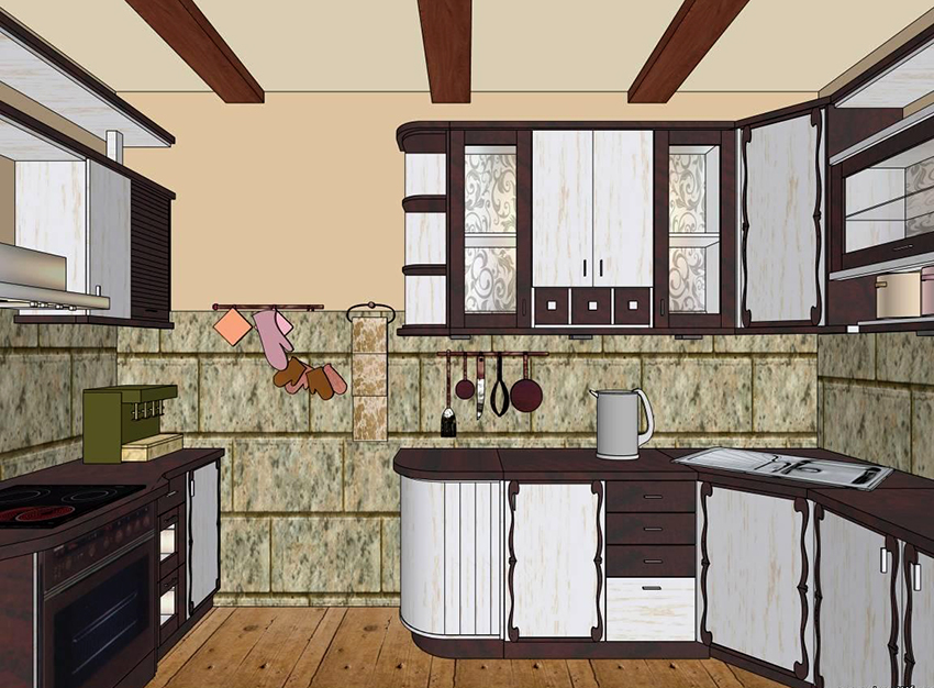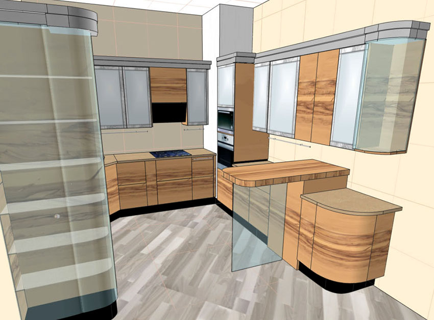 Sekiranya anda tidak hanya melukis projek dapur di atas selembar kertas, tetapi membuat reka bentuk 3D lengkap, maka, selain menghitung ukuran yang diperlukan dari set dapur, peralatan dan perabot lain, anda dapat memutuskan terlebih dahulu mengenai warna dinding dan perabot dan bahkan dengan penempatan elemen hiasan yang anda sukai. Visualisasi 3D yang sudah siap akan membolehkan anda mengagumi gambar dapur yang sudah siap dan memutuskan sama ada anda perlu membiarkan idea anda tidak berubah atau anda perlu membuat beberapa penyesuaian.