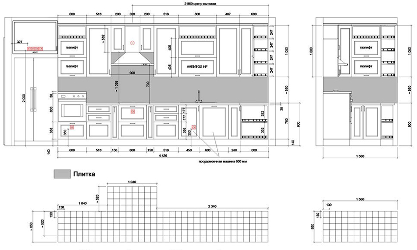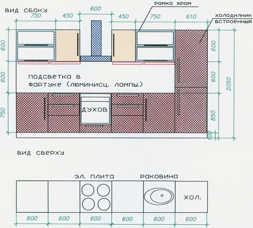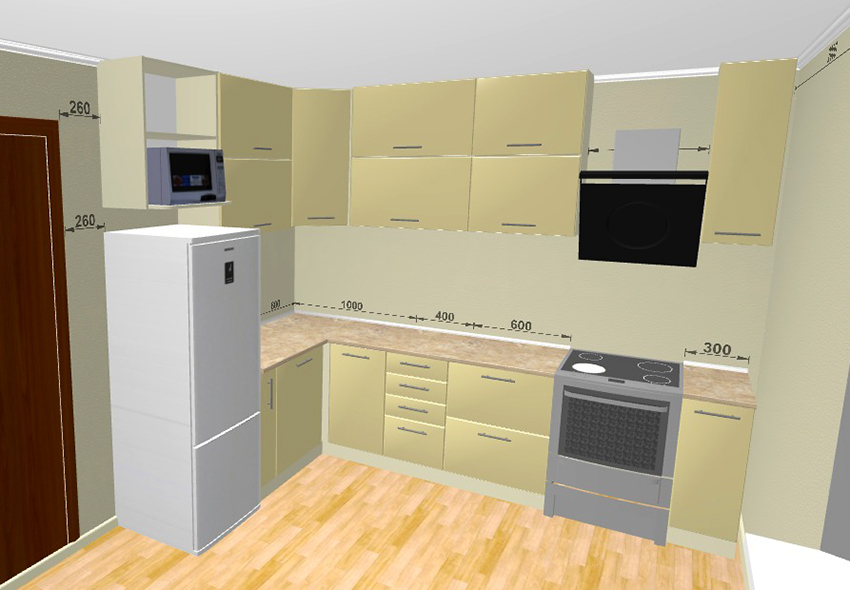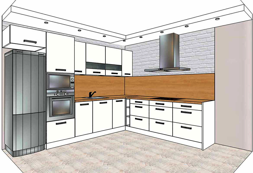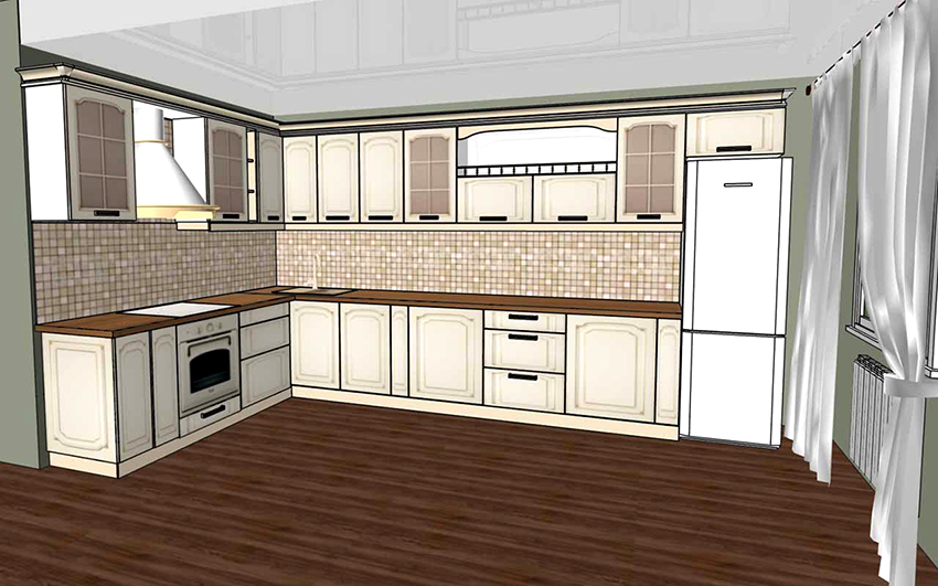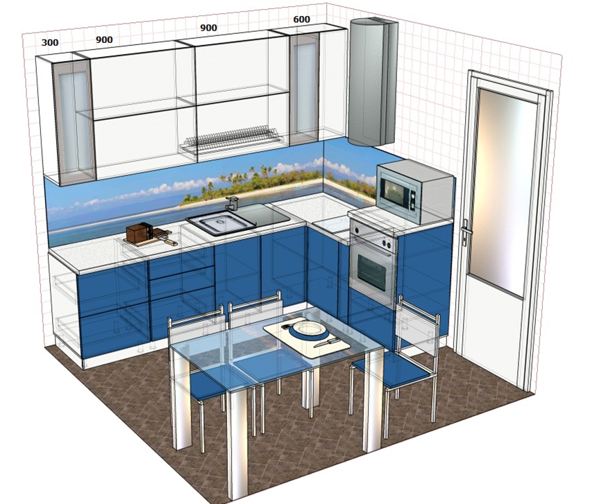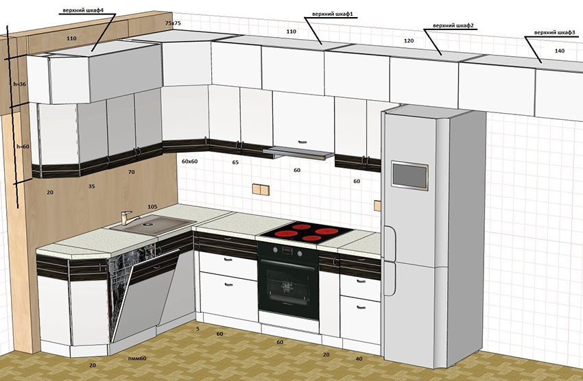Penting! Semasa membuat gambar anda sendiri, disarankan untuk melihat foto projek dapur dengan dimensi yang paling sesuai dengan ciri yang diperlukan.