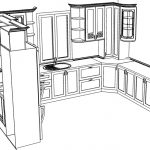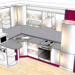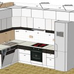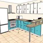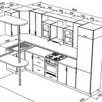 Pereka mengesyorkan untuk mula memikirkan lakaran dari saat mengatur perabot besar dan peralatan rumah tangga yang besar. Untuk membuat gambar tiga dimensi tanpa menggunakan komputer, susun atur dibuat dari kadbod atau bahan tahan lama yang lain pada skala tertentu. Anda boleh membuat model skala menggunakan ukuran standard perabot dapur: