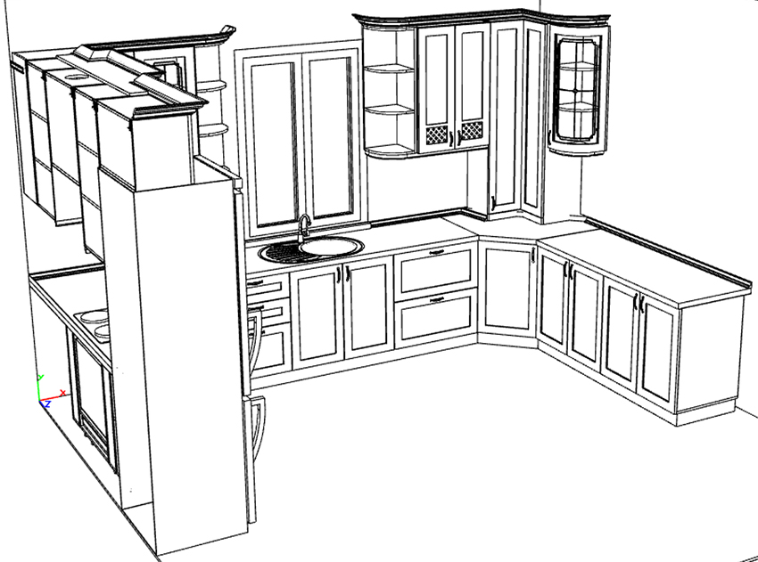 Setelah melukis beberapa lakaran yang menunjukkan dapur dari pelbagai sudut, anda perlu mengisi ruang dengan perabot maya. Sebelum meneruskan gambar perabot pada gambar rajah, disarankan untuk membuat salinan gambar terlebih dahulu, sehingga jika terjadi kesalahan, Anda tidak perlu menggambar semula ruangan.