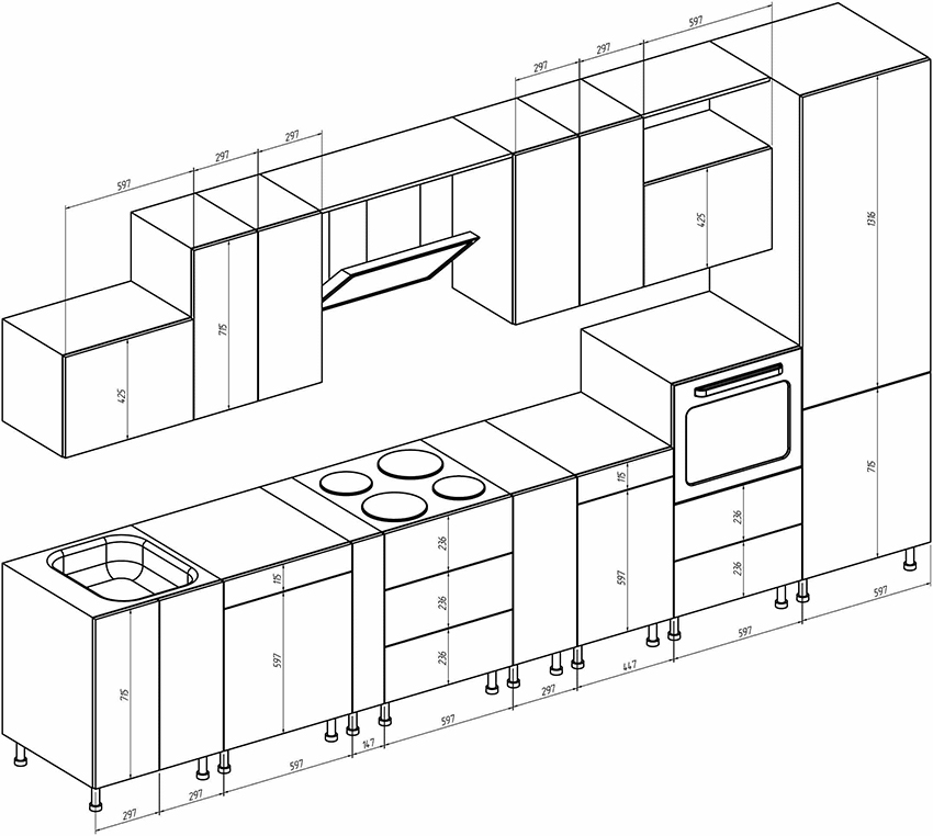 - set dapur sangat sesuai dengan parameter bilik, kerana ukuran dan konfigurasi bilik diambil kira;