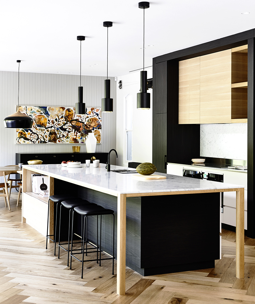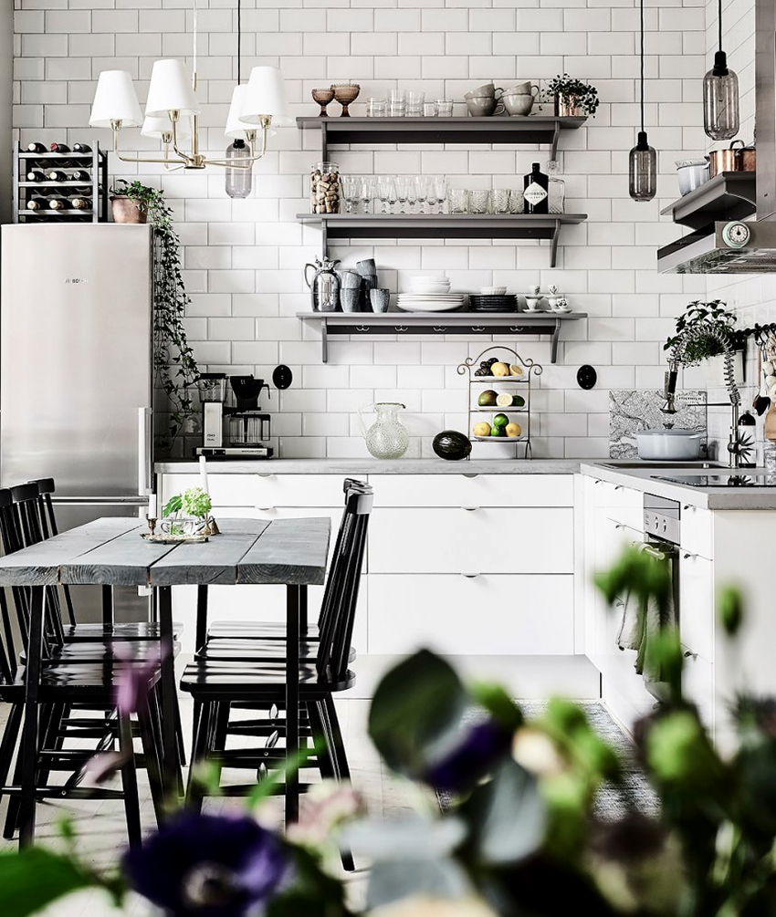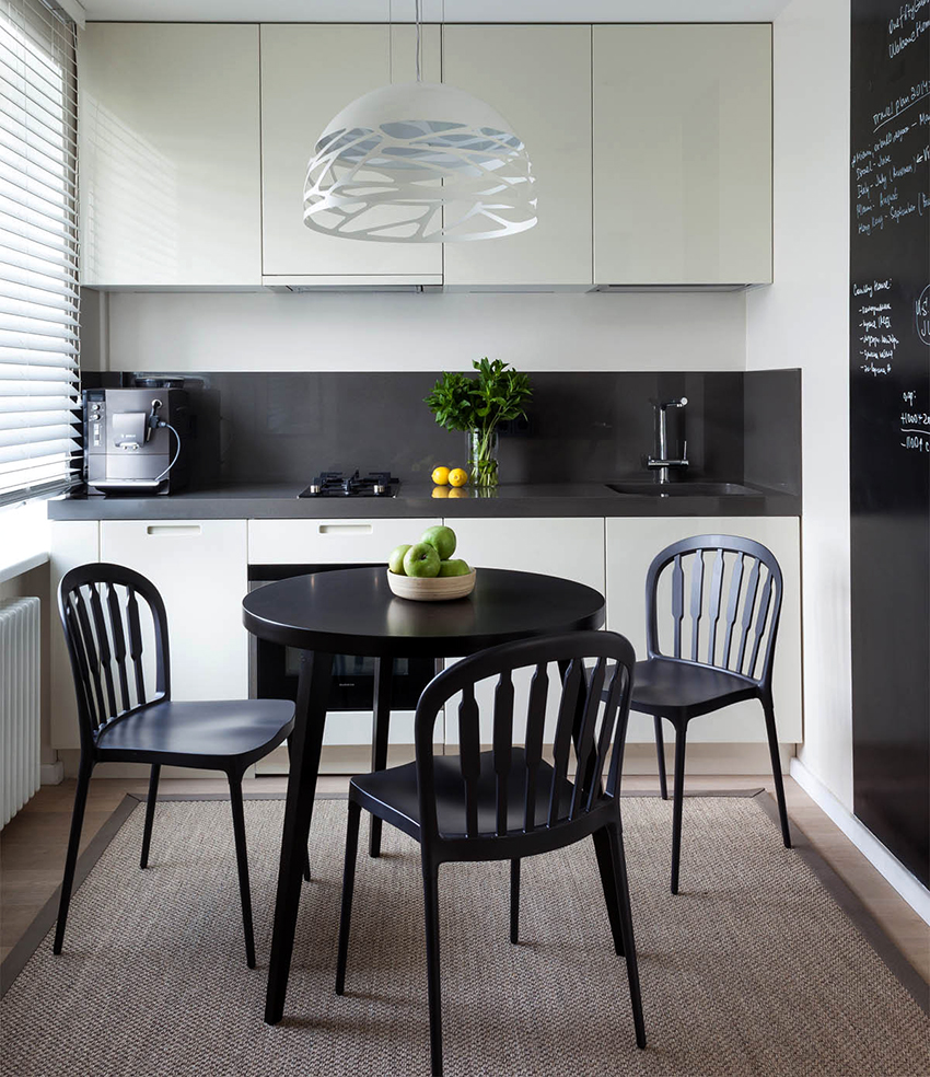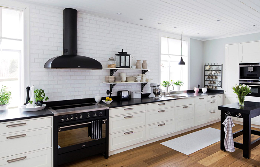 Yang hitam | Warna klasik universal yang boleh menggabungkan warna apa pun. Dapur hitam di kawasan pedalaman dicairkan dengan hijau, putih, merah, oren atau kuning |