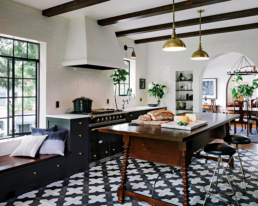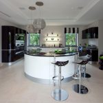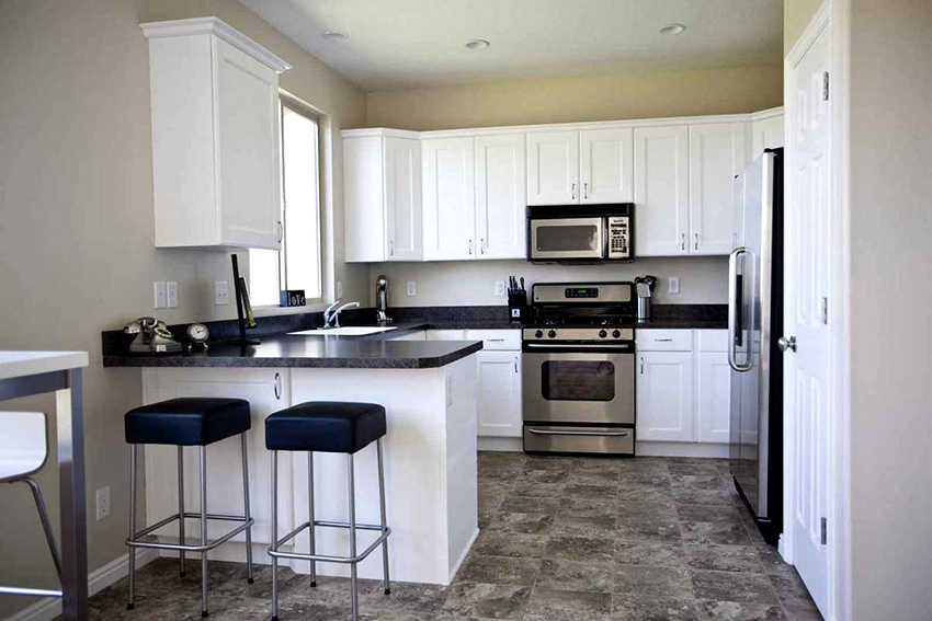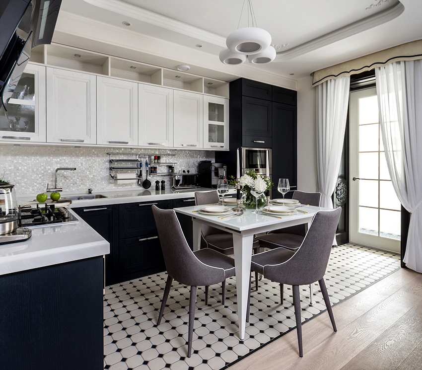 - Jubin persegi hitam dan putih yang diletakkan secara menyerong di lantai secara visual akan memperbesar jumlah dapur.