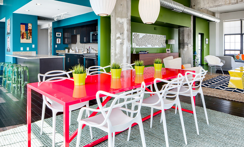 - Sekiranya pilihan untuk pelaksanaan ruang dalam beberapa warna dipilih, seseorang tidak boleh mengutamakan lebih dari tiga warna, agar tidak kehilangan ide reka bentuk utama.