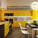 Sekiranya anda ingin menghias bilik yang menghadap ke arah utara dan tidak mempunyai cahaya semula jadi, para pereka mengesyorkan memberi keutamaan kepada warna kuningdapur hijau - warna seperti itu akan menghangatkan ruang dan mengisinya dengan suasana hati. Di Internet, anda boleh menemui foto dapur kuning yang menarik di kawasan pedalaman.
