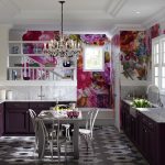 - Moden. Dalam kes ini, para pereka mengesyorkan menaungi dapur terang dengan permukaan gelap dari set dapur, dengan menggunakan warna coklat, ungu atau hitam. Kontras dibenarkan.
