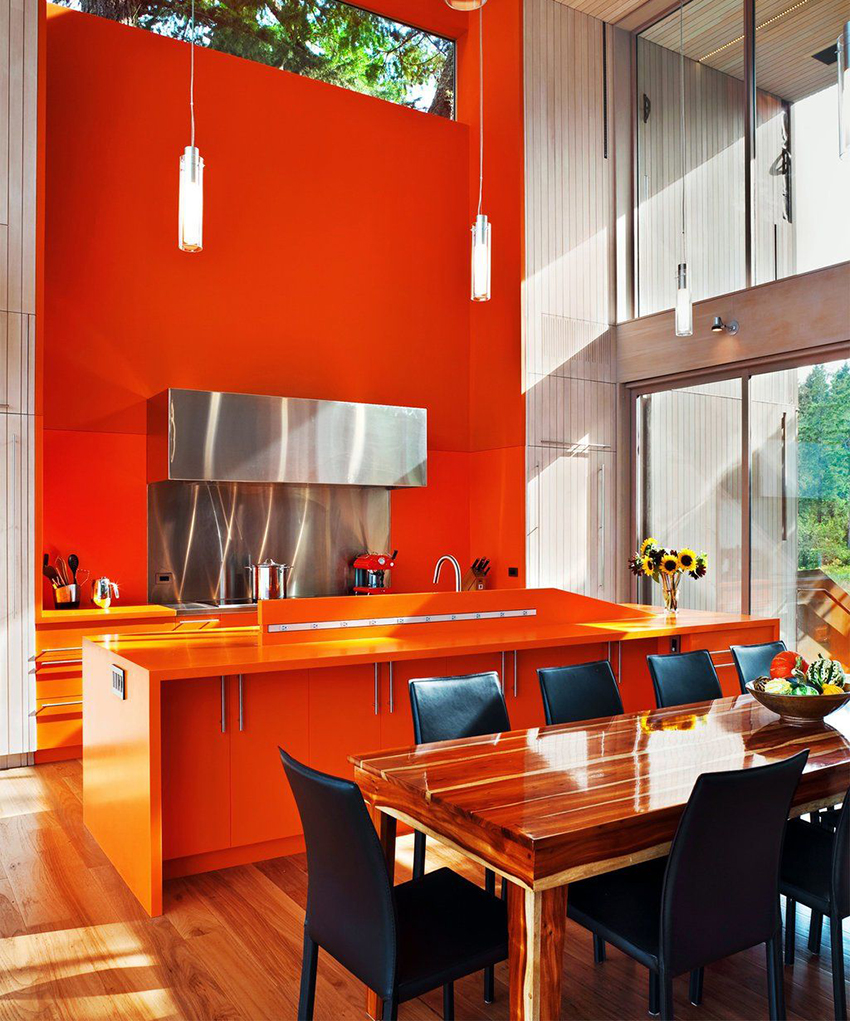 Jeruk dianggap warna berair yang membantu membangkitkan selera makan. Sangat penting untuk membuat dapur seperti itu untuk keluarga dengan anak kecil. Di dalam rumah, sesuai untuk menggunakan semua warna oren yang mengingatkan anda akan musim panas yang hangat: oren, ambar, pic. Orange adalah pilihan serba boleh kerana sesuai dengan bahagian dalam dapur kecil dan besar.