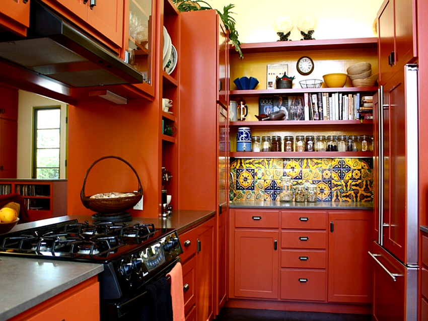 - 7 Warna dapur merah dan oren: contoh reka bentuk