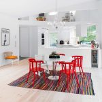 - Seni Pop. Gaya dicirikan oleh dapur ringan, yang dicairkan dengan elemen terang. Dalam kes ini, boleh diterima bahawa pada dapur berwarna putih akan ada set dapur merah terang atau perabot lain dengan warna yang sama.