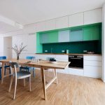 Penting! Dinding dapur yang sempit dan memanjang tidak boleh dicat dengan dua warna, kerana dengan pilihan reka bentuk ini ruangan akan memperoleh bentuk yang lebih tidak teratur dan memanjang.