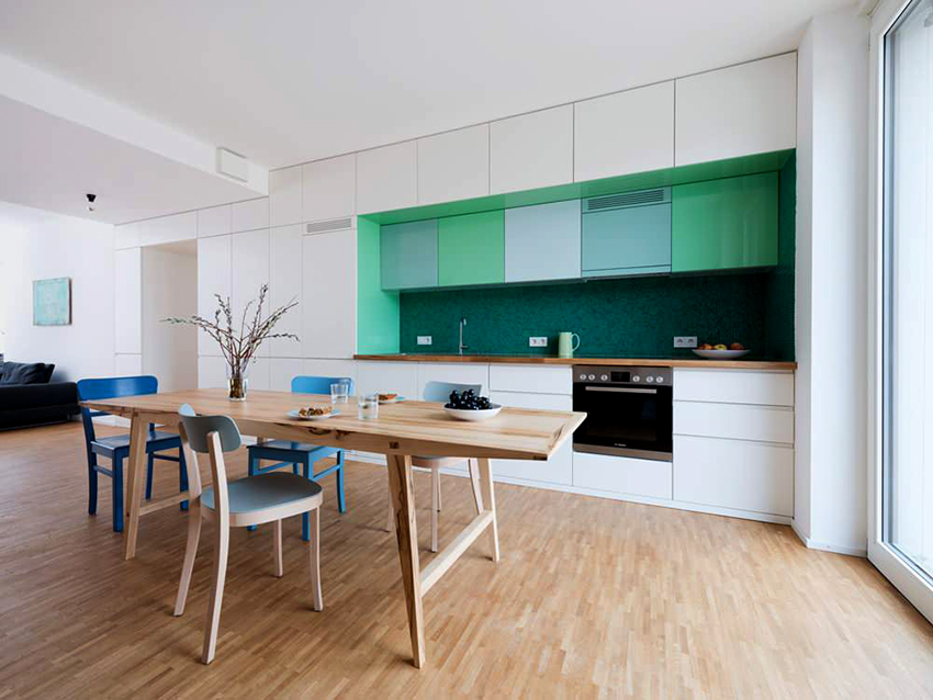 Secara umum, dapat diperhatikan bahawa tidak ada peraturan yang jelas yang menentukan skema warna dapur, kerana setiap orang mempunyai ideanya sendiri mengenai warna kegemarannya. Tetapi, jika anda memilih warna tertentu, anda perlu membiasakan khasiatnya dan memutuskan sama ada sesuai untuk menggunakannya. Sebagai contoh, ahli psikologi telah lama membuktikan bahawa penggunaan bunga sejuk membantu mengurangkan selera makan, memberi kesan santai pada sistem saraf. Warna sejuk yang paling biasa termasuk: