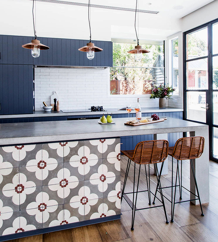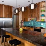 Pilihan terakhir tidak hanya memberikan penggunaan permukaan kerja yang selesa, tetapi juga membuka banyak peluang untuk kreativiti reka bentuk. Menggantikan jubin membolehkan anda mengubah bahagian dalam dapur dengan ketara tanpa membeli perabot baru.