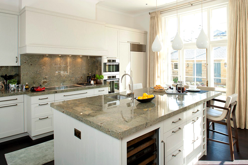 Bahan ini mempunyai berat badan yang besar dan agak sukar untuk diproses. Dalam pembuatan perabot dapur, ia digunakan untuk mengatur permukaan kerja mendatar. Keperluan berikut dikenakan pada meja batu untuk dapur: