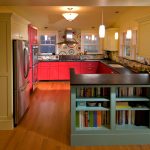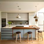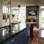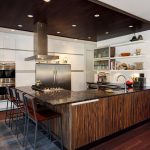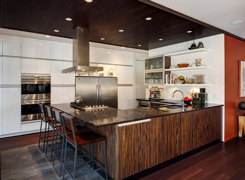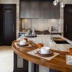 Elemen dapur moden yang bergaya dan selesa adalah meja pulau. Ini adalah permukaan kerja tambahan. Perabot ini boleh dipasang di bahagian tengah dapur dan berdiri sepenuhnya terpisah, atau bersebelahan dengan dinding kerja. Pulau dapur terdapat dalam bentuk yang sangat berbeza: persegi, segi empat tepat, dalam bentuk setengah bulatan, dan lain-lain. Kadang-kadang sink dibuat di permukaan meja, dan kompor dipasang. Selalunya, peralatan rumah tangga dipasang secara kekal di ruang pulau-pulau seperti di bawah meja: ketuhar, ketuhar gelombang mikro.