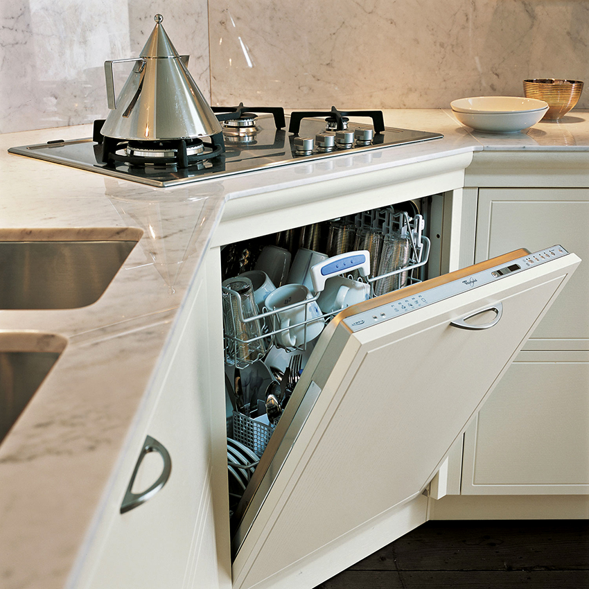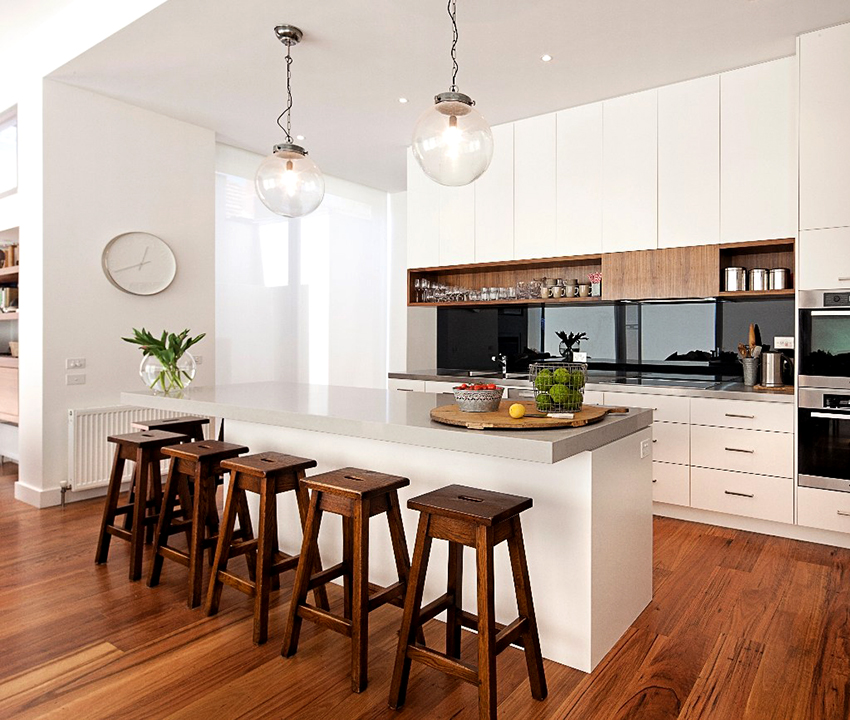 - Sebaiknya meja dapur putih mestilah 3-4 nada lebih gelap, jika tidak, keseluruhan bilik akan menjadi steril.