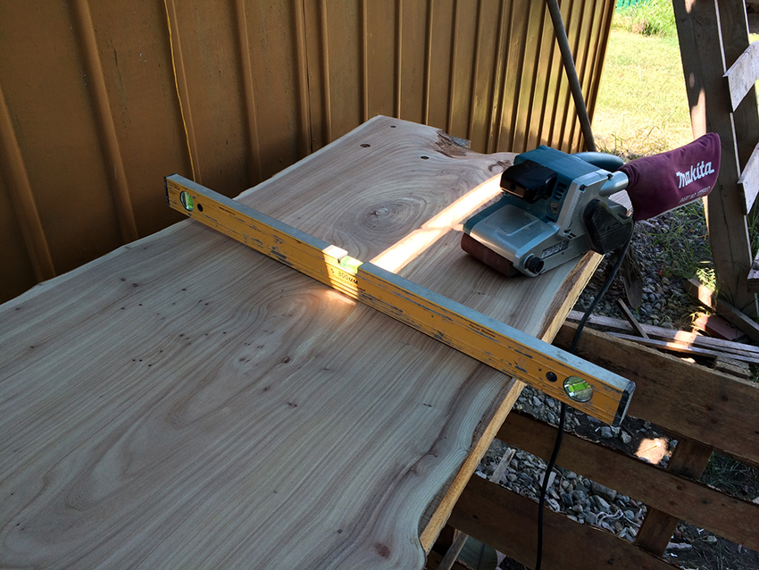 - Adalah perlu untuk menyelaraskan tahap mendatar bahagian atas perabot dengan hati-hati, di mana permukaan kerja akan dipasang. Penonjolan dan penyelewengan mesti dikeluarkan tanpa gagal.