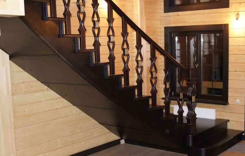 Nasihat berguna! Untuk tangga klasik, disyorkan untuk memilih produk berbentuk persegi. Bentuk yang ketat akan menjadikan struktur dan keseluruhan rumah lebih kukuh. Penutup hiasan asli digunakan pada bahagian sisi seperti itu rak.