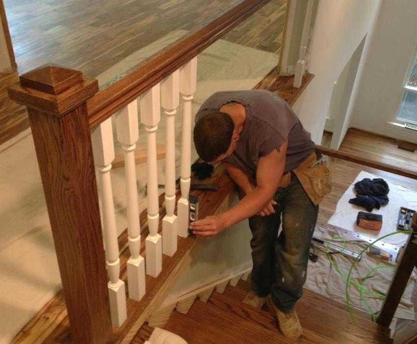 Pemasangan pegangan tangan dan balusters yang betul dari tangga kayu
