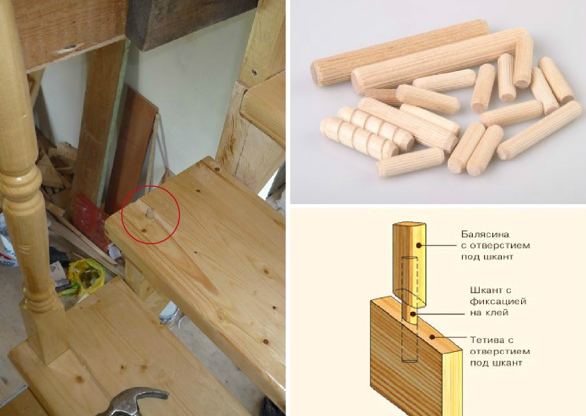 Pemasangan dowel sangat popular. Foto asli balusters kayu untuk tangga dengan pelekap seperti itu pasti menarik perhatian pengguna. Pertama, mereka perlu dipotong dari bar yang dipilih khas. Keratan rentas mereka tidak boleh kurang dari seperempat dari jumlah keseluruhan rak. Dowel mestilah panjang lebar. Biasanya sama dengan dua diameter.