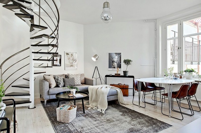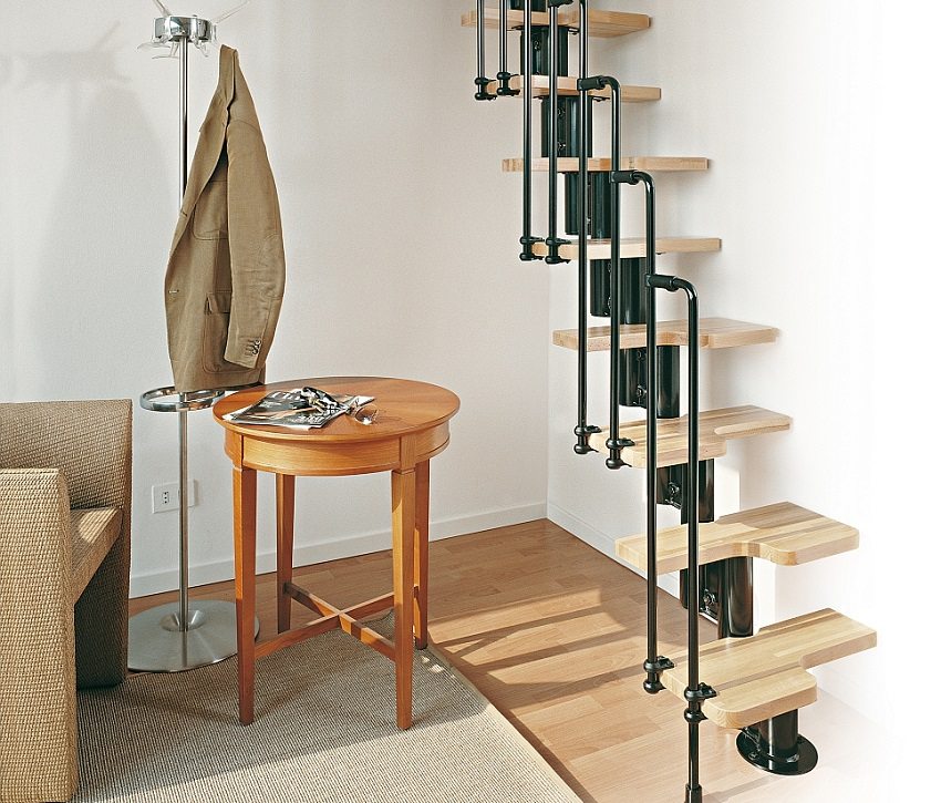 - untuk pergerakan yang mudah, ketinggian tangga tangga spiral dibuat lebih kecil daripada yang disyorkan untuk penerbangan tangga lurus;