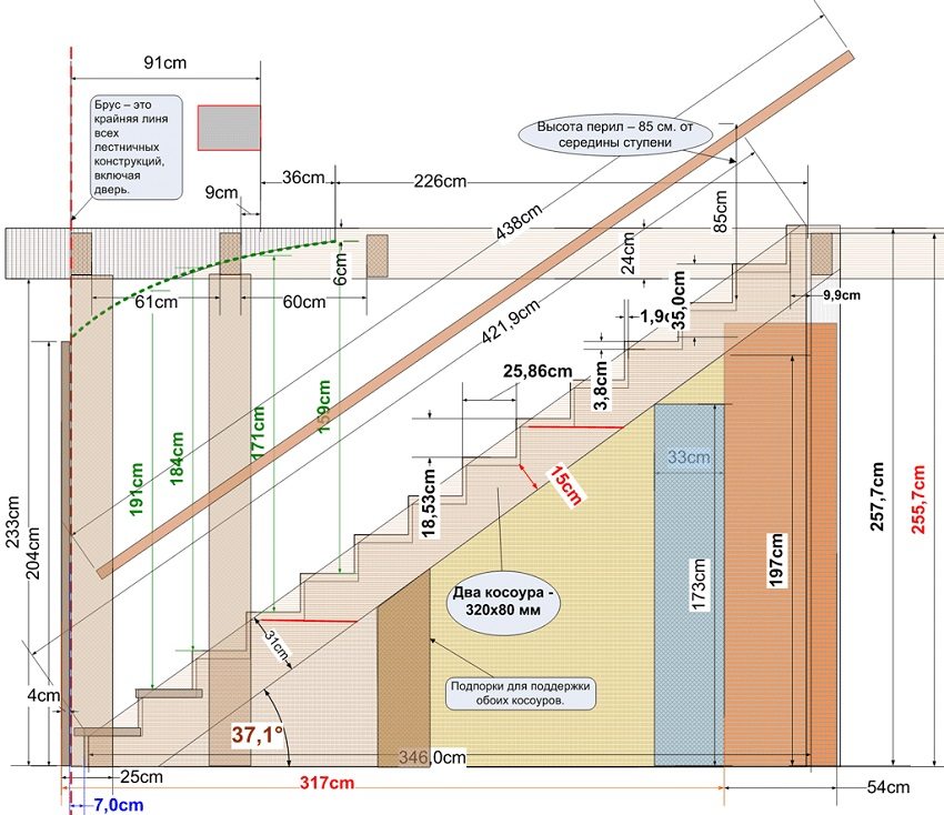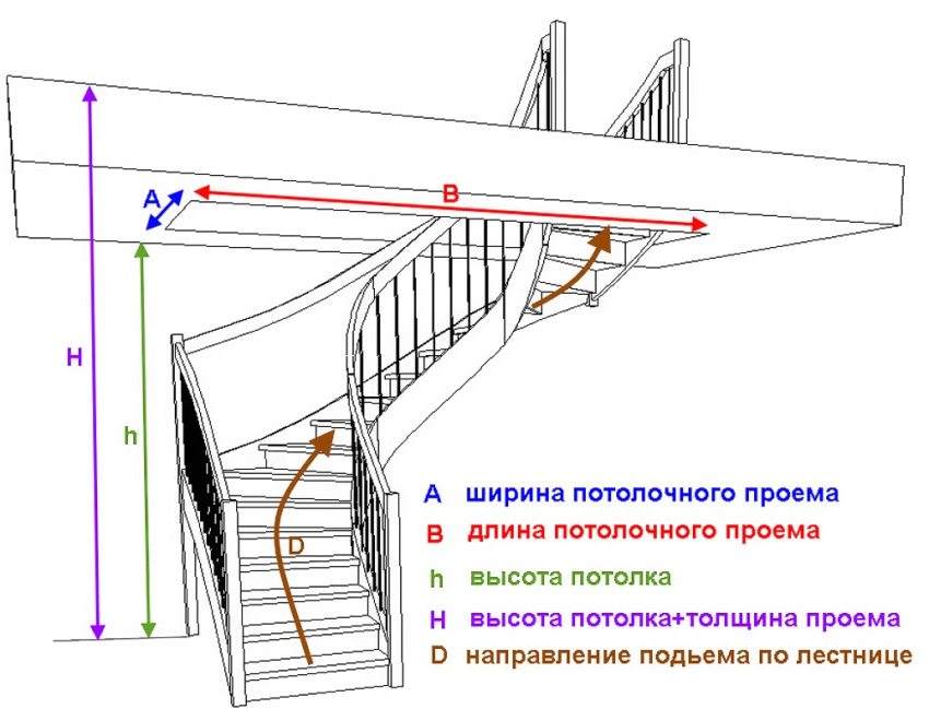 - ketinggian siling dan kawasan yang dihuni tangga masa depan - data diperlukan untuk mengira sudut kecenderungan struktur yang boleh diterima.