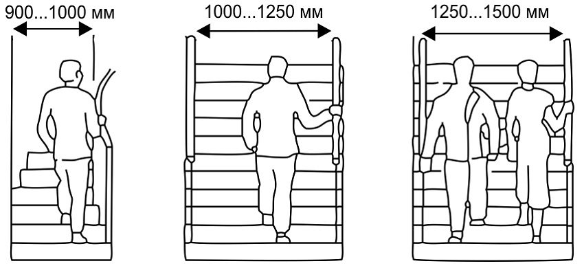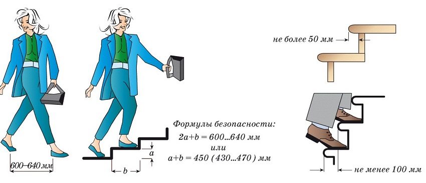 Nasihat berguna! Sekiranya tangga mempunyai dua atau lebih penerbangan yang bergerak di arah yang bertentangan, mesti ada jurang sekurang-kurangnya 50 mm di antara mereka.