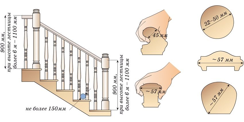Lebar pegangan tangan dan pegangan tangan yang disyorkan adalah 10 cm. Berkat ukuran ini, mana-mana orang akan merasa selesa bersandar pada mereka. Ketinggian tangga pegangan tangga yang optimum ialah 90 cm. Dalam kes ini, balusters akan mempunyai ketinggian sekitar 80 cm.Tetapi di sini adalah perlu untuk mempertimbangkan fakta bahawa balusters dimasukkan ke dalam alur khas, sehingga kedalamannya diambil kira ketika menentukan ketinggian rak.