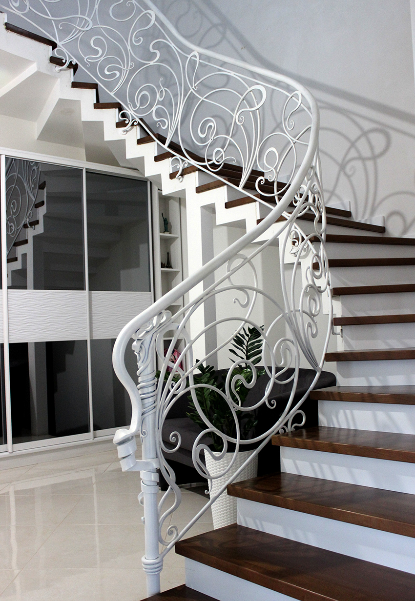 Tangga besi tempa di rumah boleh mempunyai corak yang meliputi tepi tajam. Ini meningkatkan kemungkinan kecederaan. Sebaiknya perhatikan bahagian mana yang termasuk dalam struktur, terutama jika anak-anak tinggal di rumah. Dalam kes ini, lebih baik membeli pagar dengan elemen bulat.