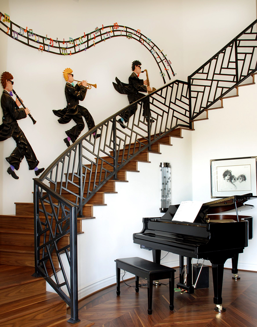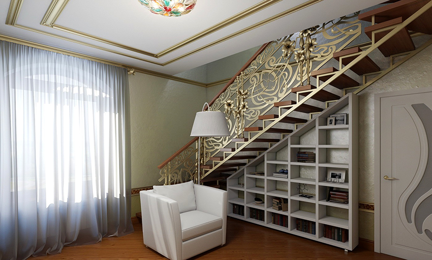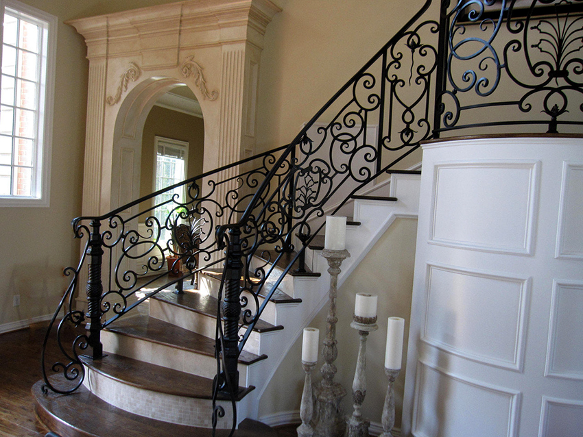 Unsur-unsur palsu telah dijadikan hiasan reka bentuk selama berabad-abad. Mereka menonjol dengan latar belakang elemen dalaman yang lain, kerana ia asli dan sangat cantik. Tangga yang dihiasi dengan hiasan logam sangat popular. Reka bentuk seperti itu paling sering digunakan di bahagian dalam rumah persendirian dan kotej negara.